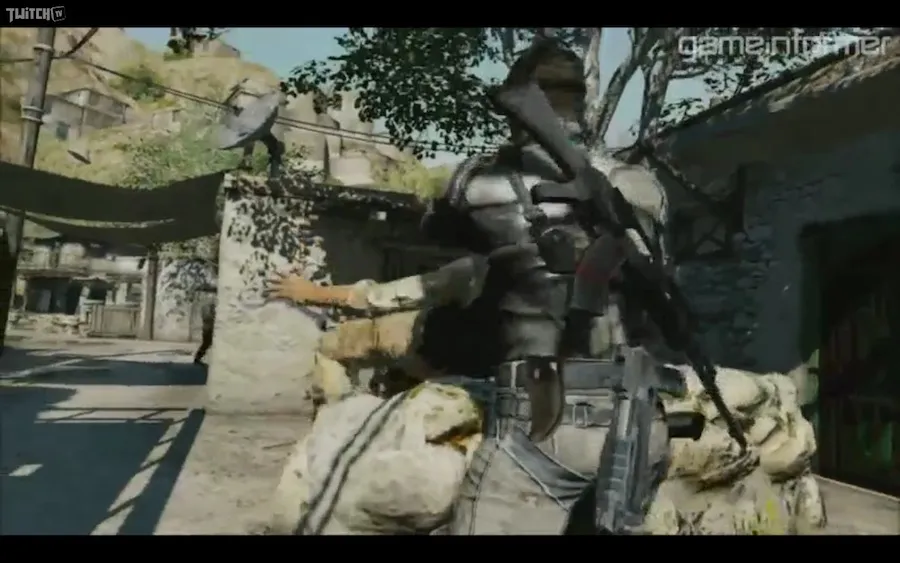 In a small courtyard, Sam stealthily takes out a group of soldiers, flawlessly switching between slow motion gunfire and up-close knife kills, while effortlessly sliding over cars and climbing up walls more like one of the protagonists in an Assassin’s Creed title.