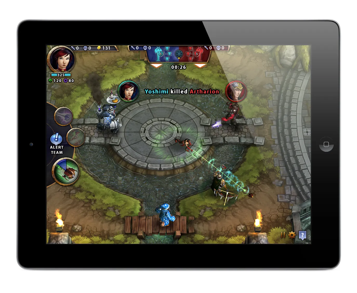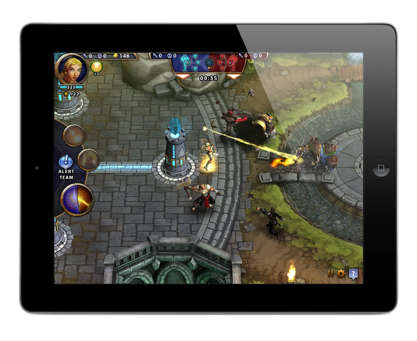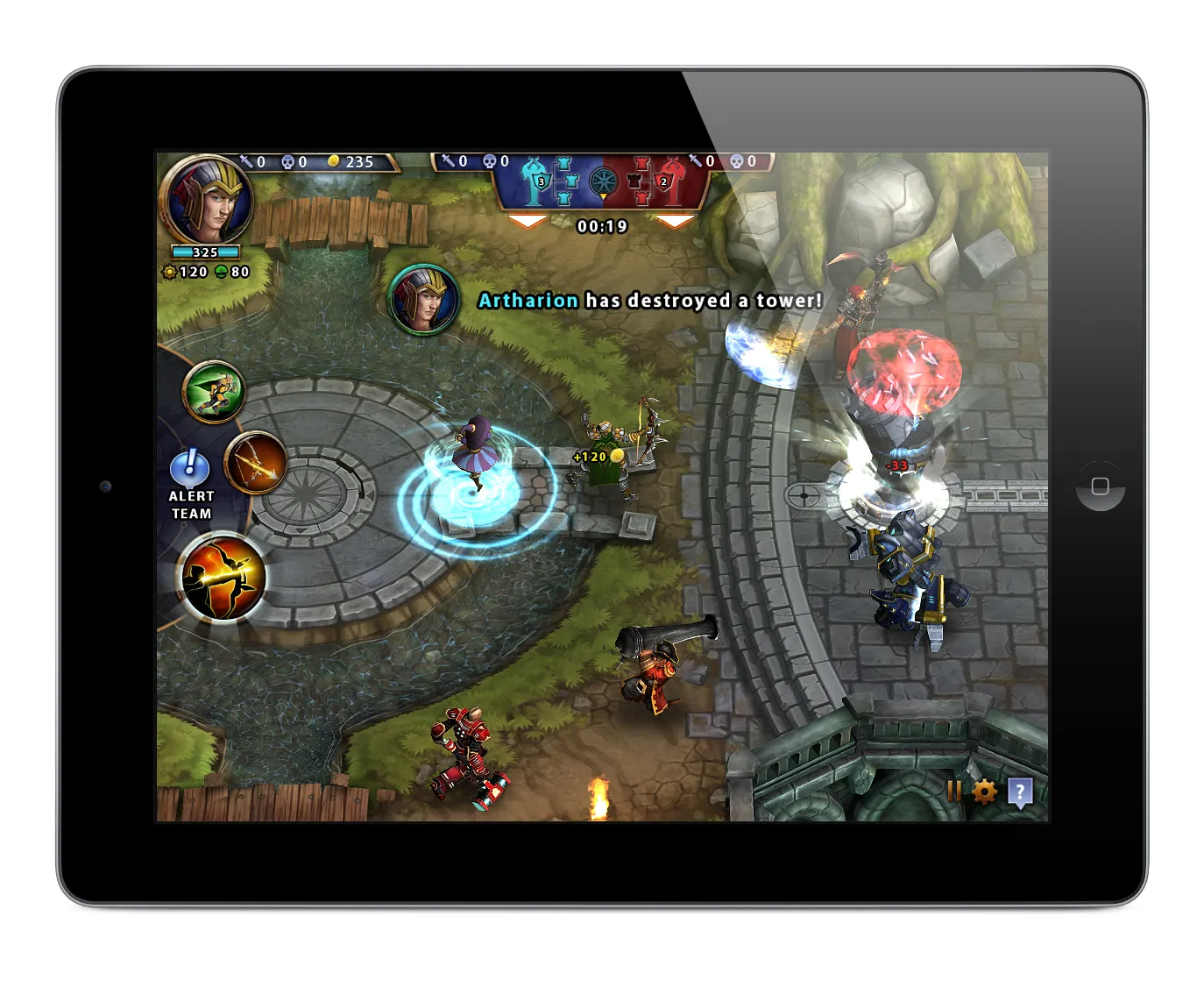 The touch screen controls are intuitive, and the map is condensed for quick play. There are no AI minions marching across the screen and no farming. Instead, if all three members of a team are knocked out, the four forward towers and large base are robbed of offensive power. They can be obliterated quickly in that scenario, which keeps games brisk (around 10 minutes each).