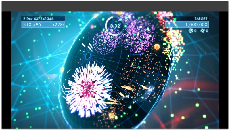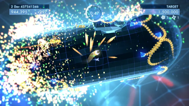 Geometry Wars' signature difficulty is certainly intact. Even when competing for a high score against the clock with unlimited lives, the penalty of wiping out nearby enemies (and losing the multiplier burst) hurts.
