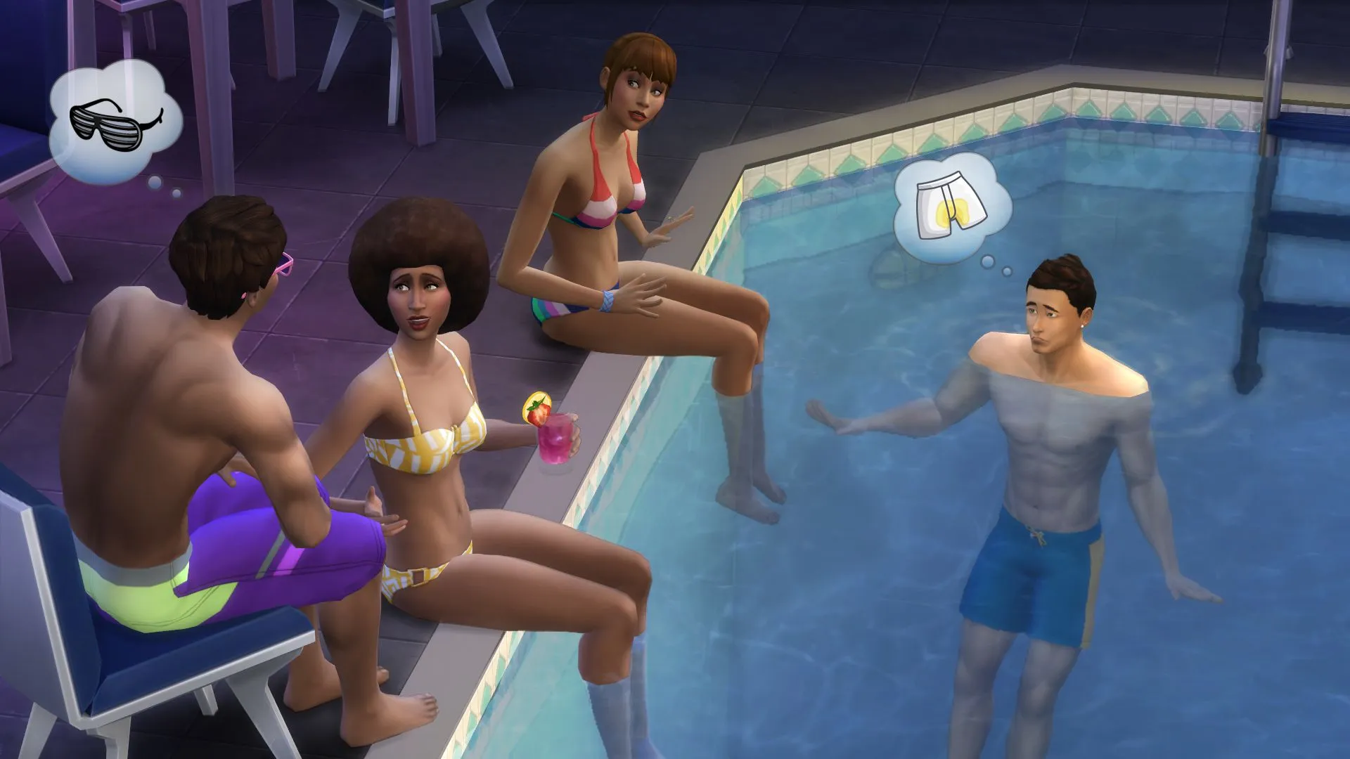 The Sims 4 is also adding some new elements to pools. They now have variable depth, and sims can sit on the side of them to socialize. Standbys like drowning are still in place. The update also includes new outfits for your sims, as they need swimming gear, such as speedos and board shorts for men and one-pieces and bikinis for women. Sims can socialize while they're swimming, too, no longer having to get out of the pool to chat with others.