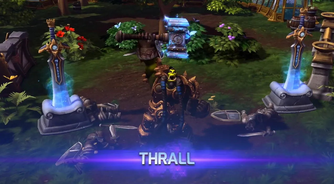 Thrall is a melee brawler that uses a windfury empowered Doomhammer to crush opponents at close range, but also has the ability to dish out damage at range with chain lightning, fire wolves, and a massive earthquake ultimate.