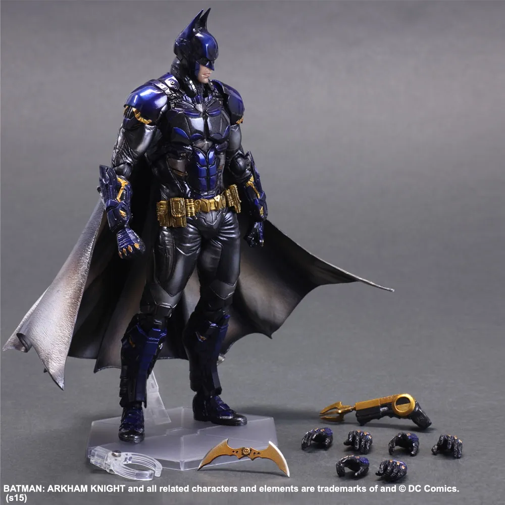 The figure stands at 11 inches tall and can be posed in a variety of different ways. In addition, the figure includes several different interchangeable hands, as well as a gold batarang and batclaw. Batman's cape is also designed to behave the way fabric does in real life. In addition, the figure comes with a display stand.