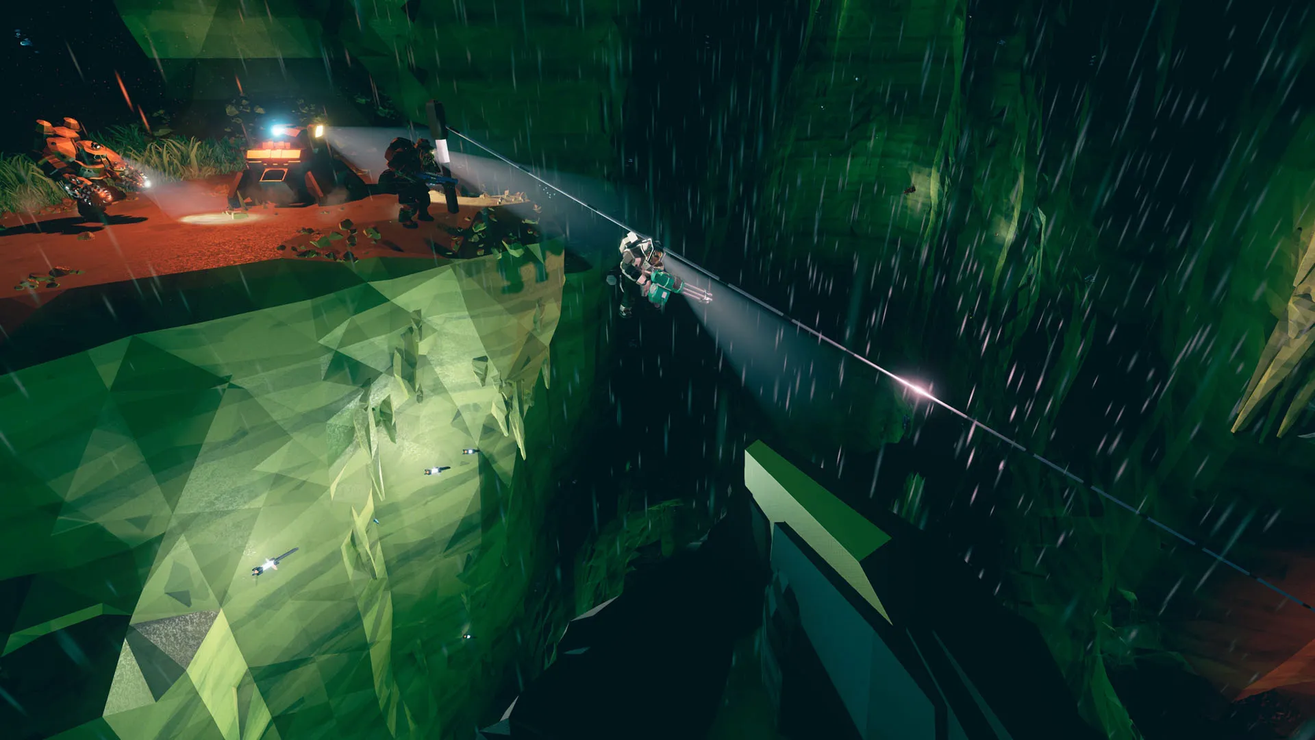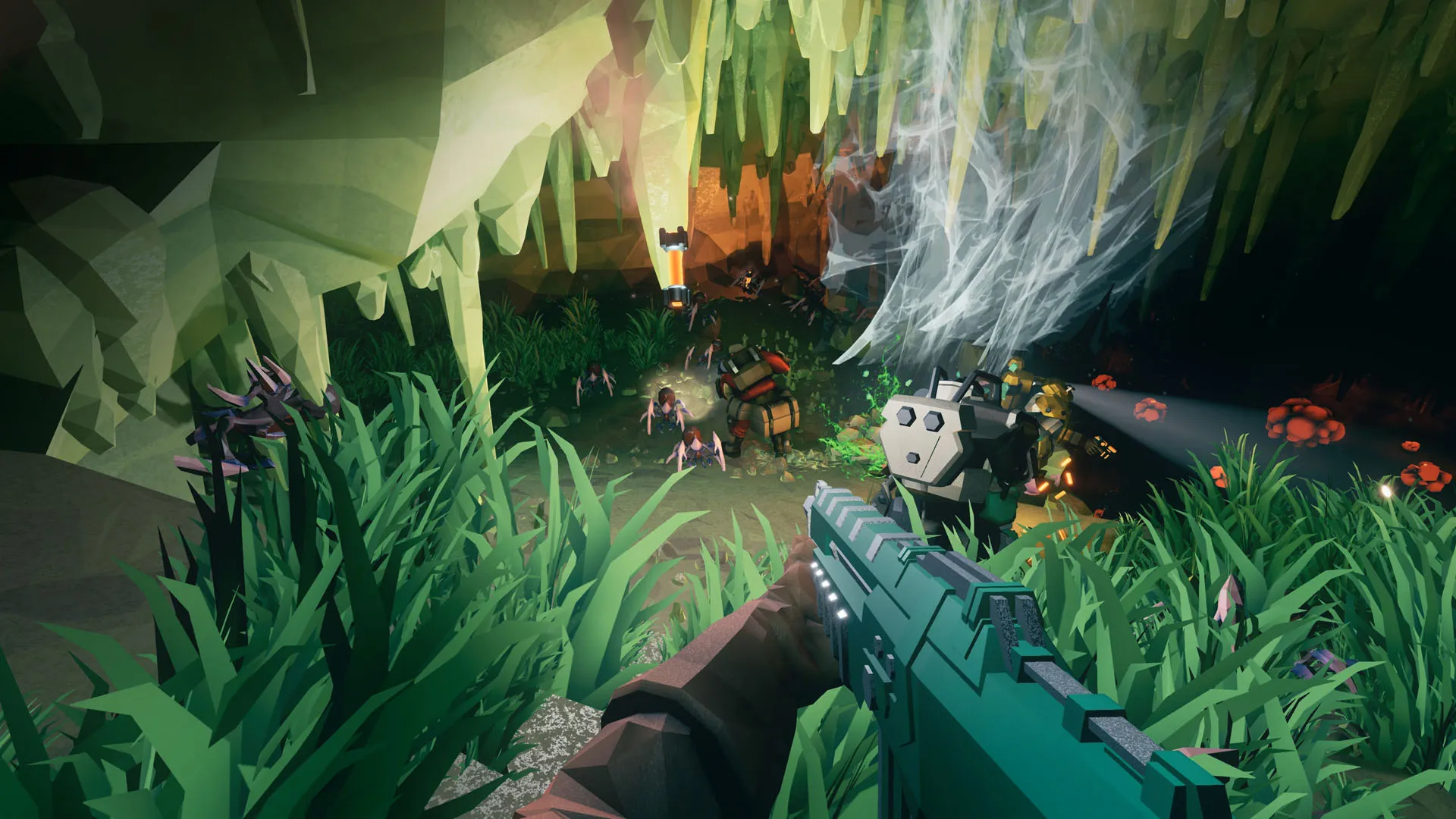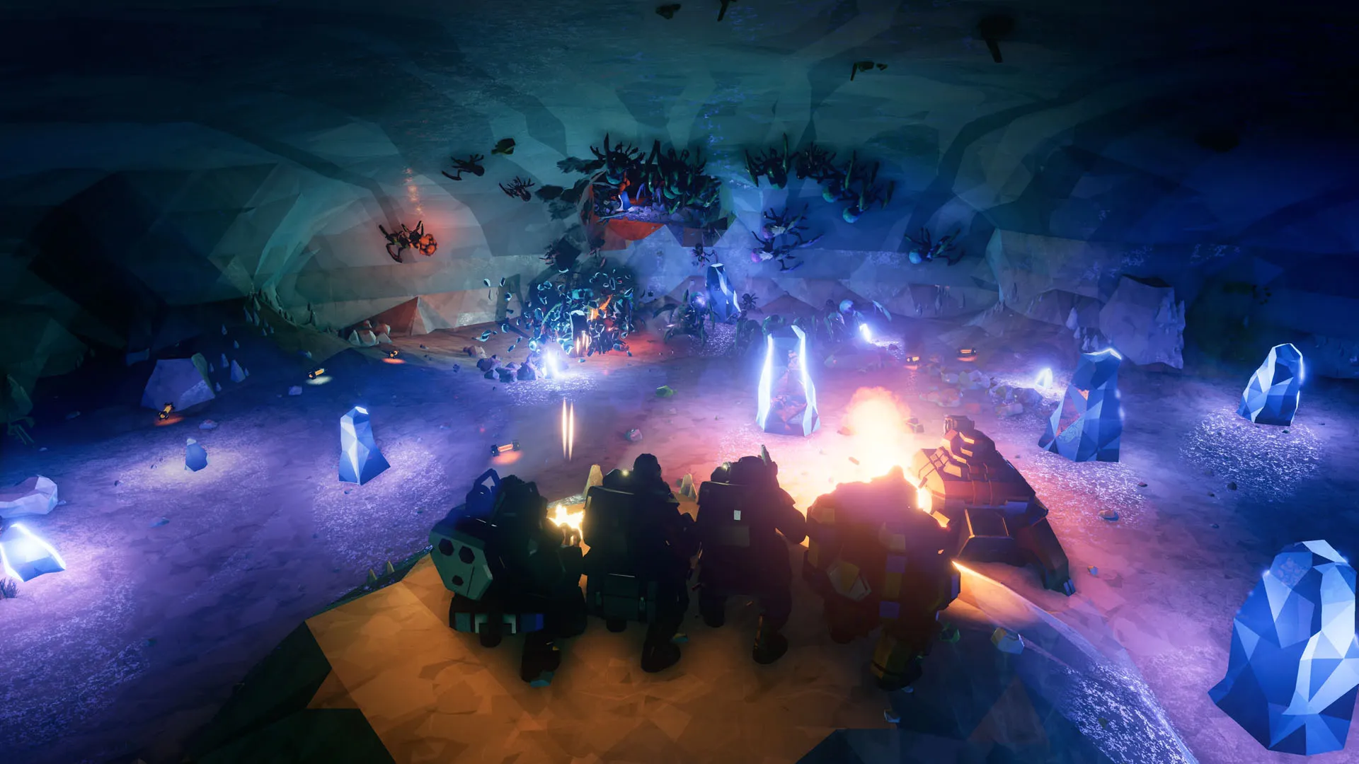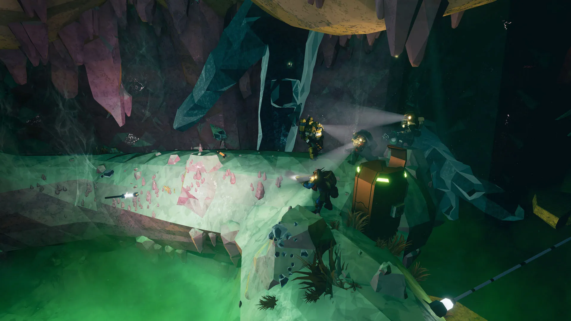 Deep Rock Galactic focuses on space mining dwarven mercenaries who tackle impossible jobs deep beneath the surface of alien surfaces. Up to four players can join up to fight and dig their way through danger. The areas you move through are procedurally generated, and filled with colorful alien creatures.