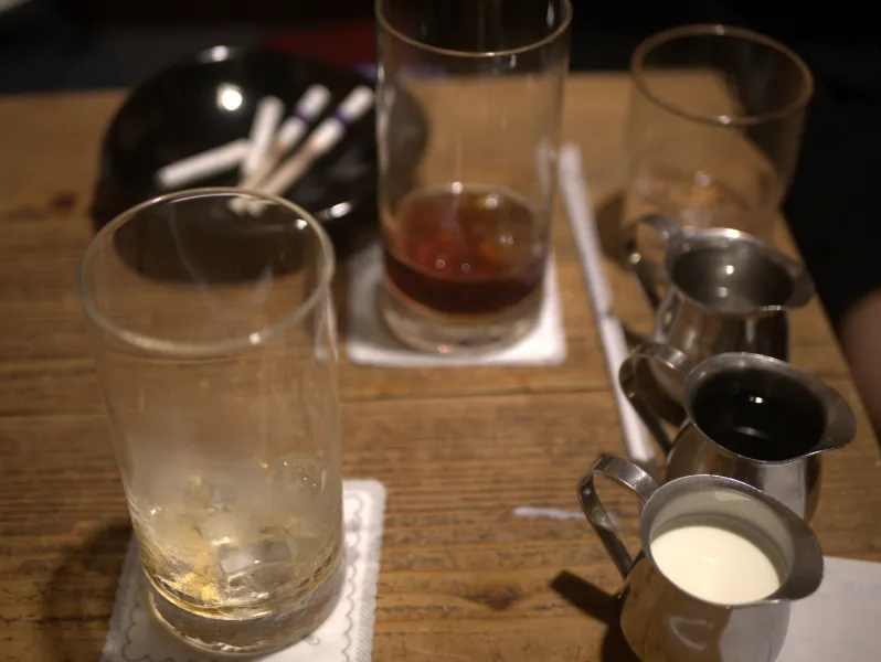 We meander on before finding our way into a coffee shop tucked into the basement of an old building. It's dim and quiet. Only a few customers are in the cramped space – one far in the corner reading a book and a small group across from him quietly talking over their drinks. It's a quaint little spot away from the street noise above, a blink-and-you'll-miss-it type of place. Most apparent is the smell. Walking in the front door, a shotgun blast of cigarette smoke hits you in the face.