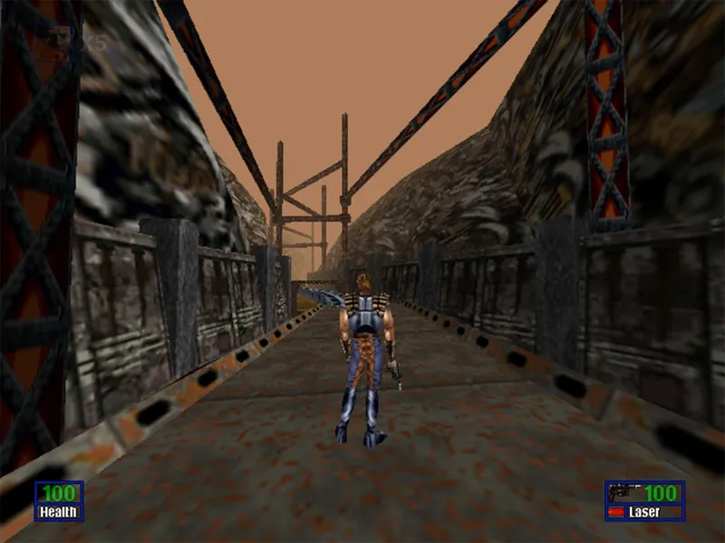 Among the on-foot levels, Gall Spaceport stands out. You begin the level inside of The Outrider, and then step out into the larger world seamlessly – an impressive feat in 1996. “That was a requirement of mine. I always wanted to do that in a game, but hadn't been able to,” Knoles says. The level was designed by Jim Current and was impressive in its ability to show the player their destination long before they would actually be able to get there. The level’s large vistas were even more explorable after acquiring a jetpack about halfway through the level. There were few, if any invisible barriers to exploration, and it all culminated in a boss fight against Boba Fett and his iconic ship, The Slave 1. "The boss fight at the end was meant from the start to be Boba Fett's first great video game appearance," Knoles says. "Mark Haigh-Hutchinson did a great job of making him a total badass."