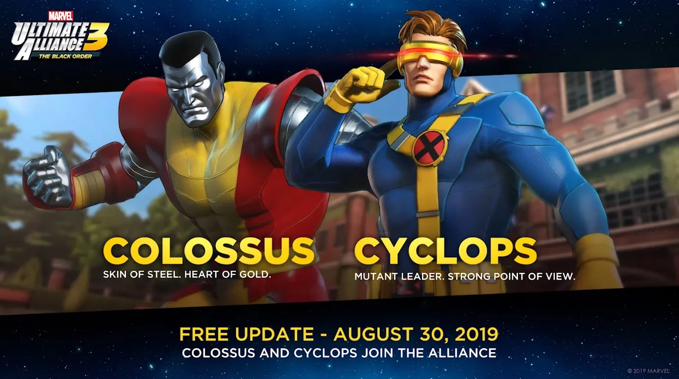 The first big update for Marvel Ultimate Alliance: The Black Order arrives on August 30 (and it's free). The most significant addition is new characters: Colossus and Cyclops are joining the roster as playable heroes. They were already featured in the story, just as background players. You'll now get to play as them and level them up.