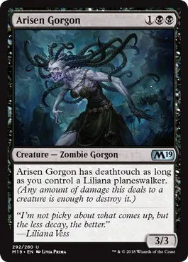 Liliana may be interesting by herself, but she also has dark minions ready to join her cause. Arisen Gorgon is a decent 3/3 drop for 3, but if you have any version of Liliana on your side of the board, the solid creature also boasts deathtouch, ready to stone gaze down anything that gets in its way. A nice touch for when you need to take on a giant wurm or rampaging ogre!