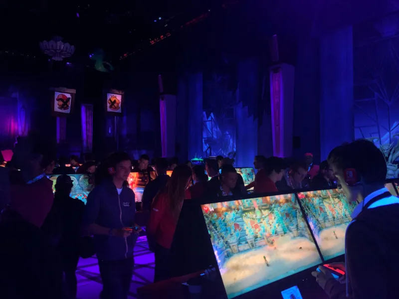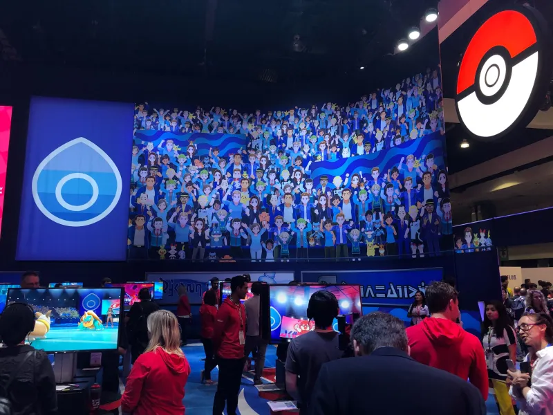 The interior of the Pokémon booth is modeled after the water-type gym shown off in the E3 demo, with a crowd creepily overlooking people who just wanted to play the dang game after waiting in line for so long. However...