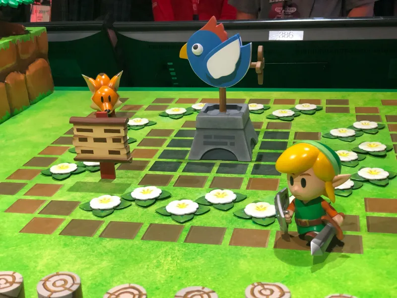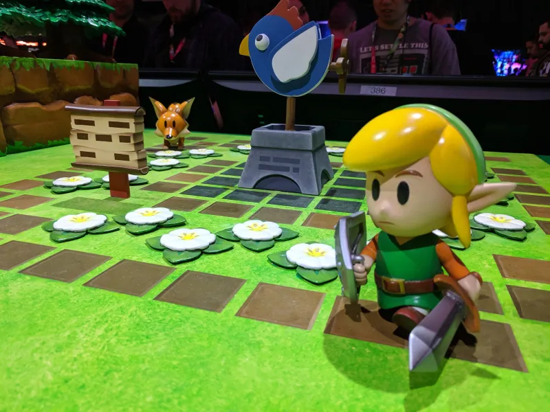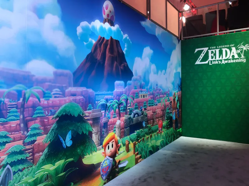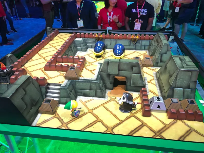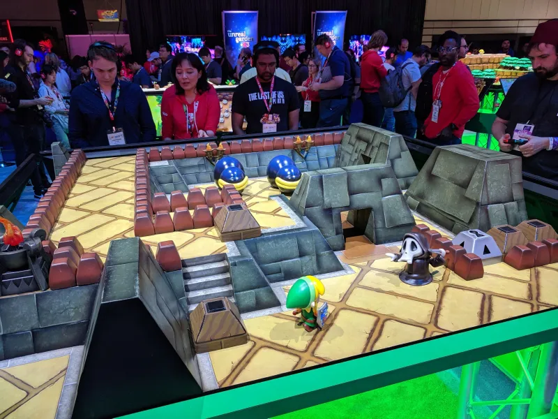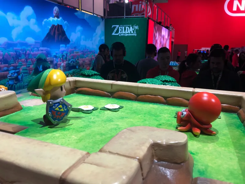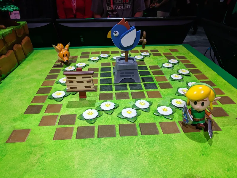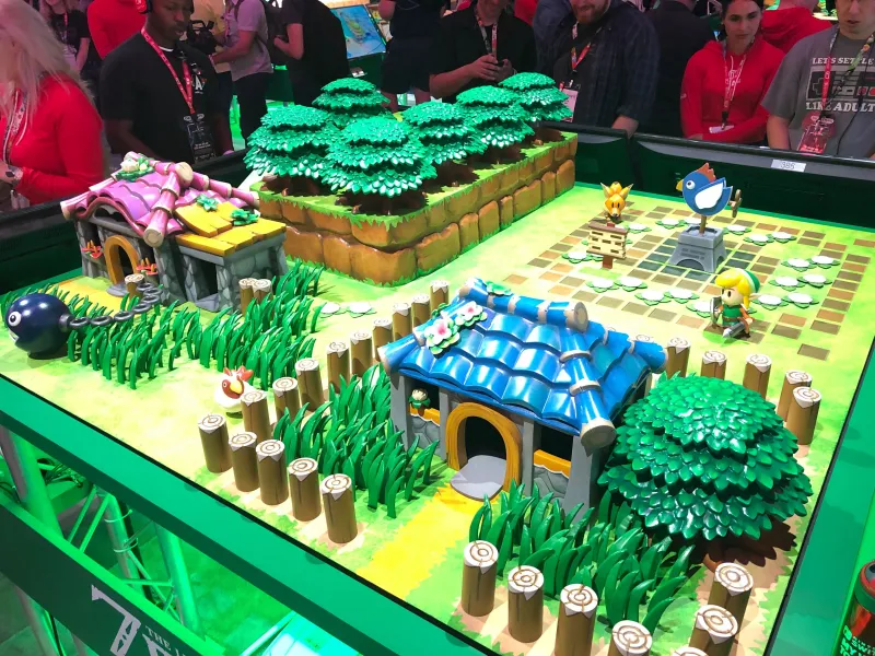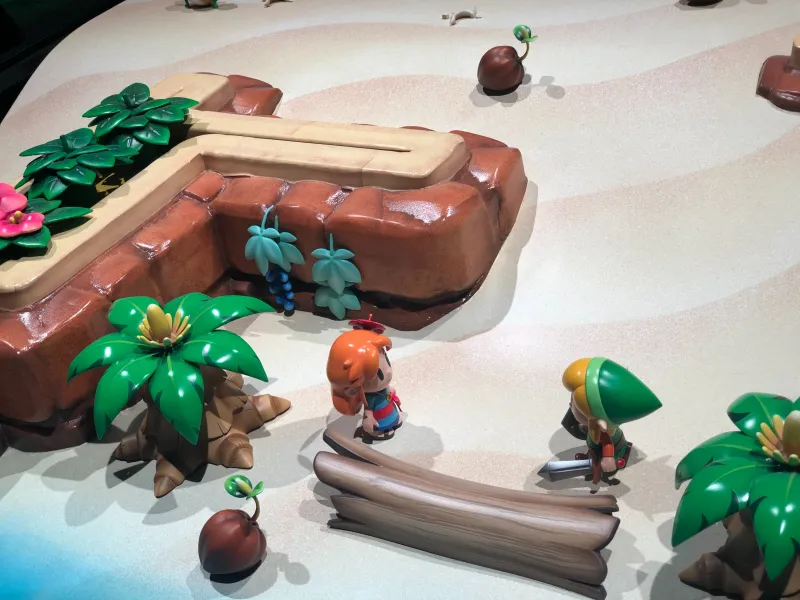 First up, the main attraction: Link's Awakening. Nintendo built large dioramas of some of the classic locations in the remake, including Mabe Village, Tornobo Shores, and the inside of Tail Cave.