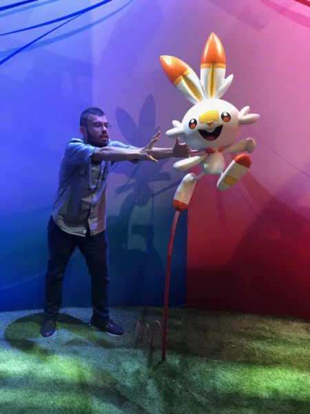 The outside of the booth had these little guys hanging around! Sobble, Scorbunny, and Grookey were all scampering around outside, waiting to be hugged, prodded, and photographed all throughout the show. Everyone except Sobble looks like they're having a blast, and as the person in these photos, I can confirm that I was!