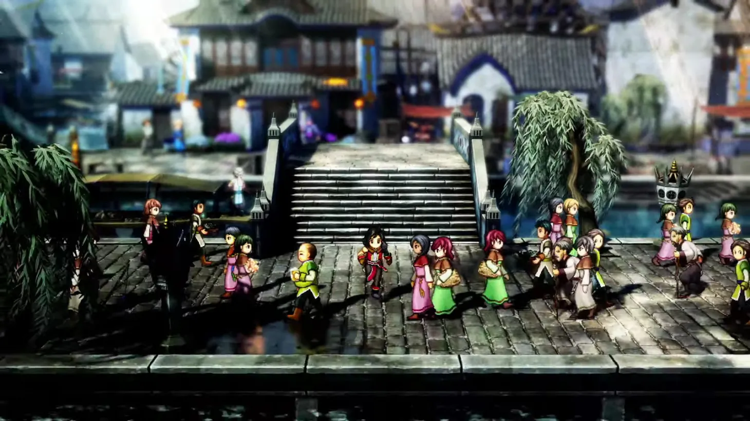 Our first look at Hundred Heroes revealed it has a style similar to Square Enix’s recent 2D-HD games like Octopath Traveler and the upcoming remake of Dragon Quest III. Eiyuden Chronicle is using 3D scenery while its characters are displayed as 2D sprites, giving it a look as if it were intended to have come out on the original PlayStation.