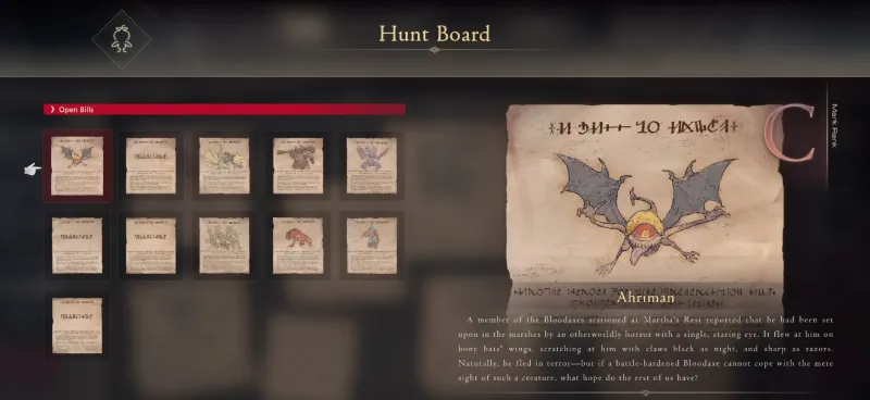 The third major aspect of Otto’s Counter is the Hunt Board. If you’ve played Final Fantasy XII, this board is familiar because it looks and works similarly. That’s not surprising, considering a good chunk of FFXVI’s team leads worked on FFXII. At this board, you collect bounties and perform hunts throughout Valisthea. Sometimes, you’ll stumble upon a hunt without the bounty, but there’s no need to stress about picking it up. If you complete the hunt, you’ll receive the reward associated with it next time you return to the Hunt Board.