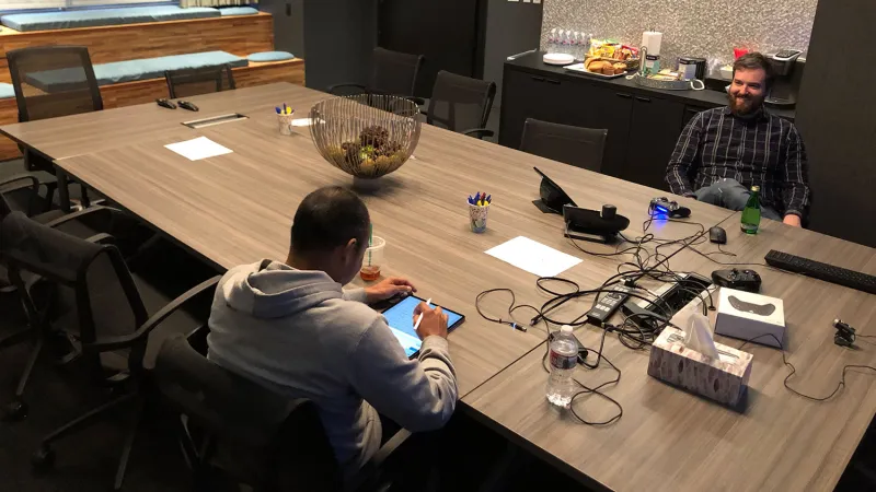 Kyle Hilliard: When putting our schedule together for the Fallen Order cover trip, I honestly wasn’t sure what to expect from getting to sit in on a design meeting. I assumed we would be interviewing Respawn folks who would potentially be part of a meeting like this, so I was surprised when a team of six or so designers came into the meeting room, made their introductions, but then got down to business by loading up a build of the level they were there to discuss and playing through it.