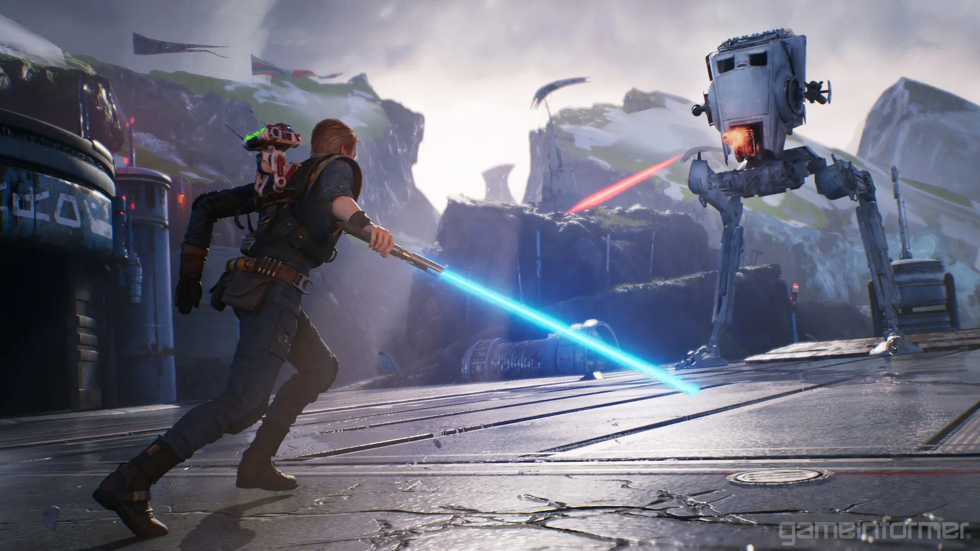 Should Cal come across creatures engaged with Imperial forces, he can sit back and watch the two sides battle to the death before joining the fray, or use this window of distraction to get a jump on both sides. Respawn showed us a battle in its development sandbox that included an AT-ST and Imperial ground troops taking on several giant, ogre-like beasts, acid-spewing slugs, and aggressive lizards.