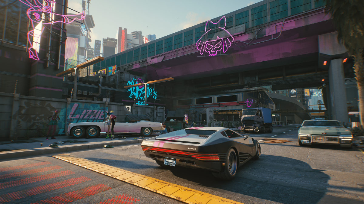 Driving around the city, this feels like a denser setting than anything CD Projekt Red has previously attempted. It’s labyrinthine, so much so you will often be navigating it by car. The driving takes a little getting used to, because there are a lot of tight spaces, and taking wide turns can feel punishing. You can eventually steal different cars, and if you engage in too much crime, your wanted level will rise, meaning you need to lay low for a bit.
