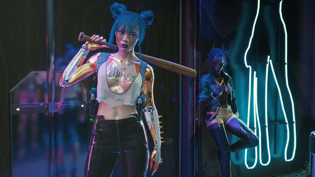 The best way to describe our first moments in Night City is sensory overload. This is a high-tech, fast-paced world, and everything is vying for your attention. Pay attention to the people around you, and you can unlock cool scenes, like when we stopped to listen to a man preaching about the harm of technology, only to see a group of girls comment on his weird antics and take a selfie in front of him like he was a zoo attraction. Turn the wrong corner and you could come face-to-face with a gang waiting to jump you. Ads plaster the world, showcasing everything from sex toys to water supplements. Excess consumerism is alive and well.