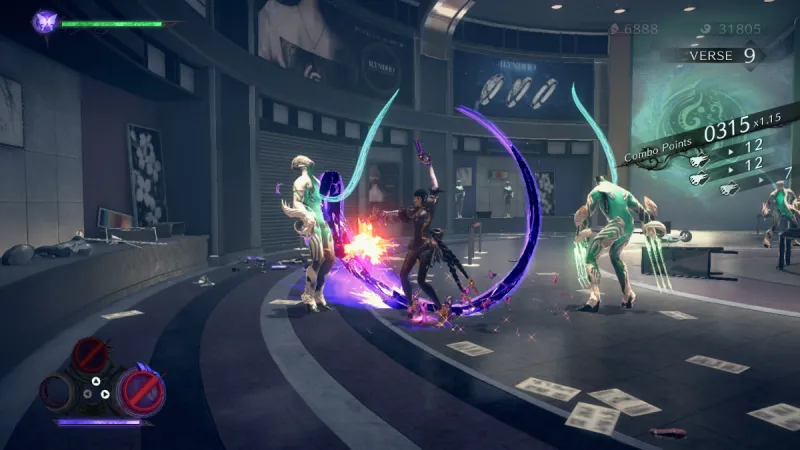 I immediately notice that Bayonetta moves even more gracefully, almost as if dancing on air. Her attacks also incorporate more elements of Madama Butterfly, the beautiful demonic entity from which she traditionally draws most of her power. This change is attributed to Demon Masquerade, one of the new pillars of Bayonetta 3’s combat.