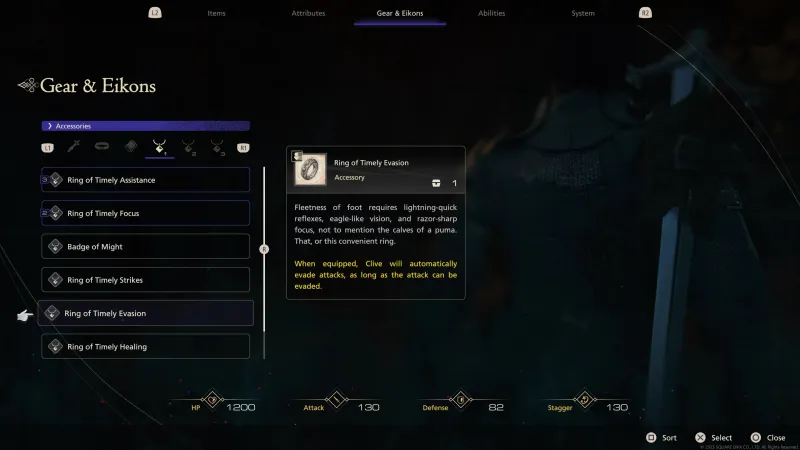 Ring of Timely Evasion: Allows Clive to automatically dodge most attacks.