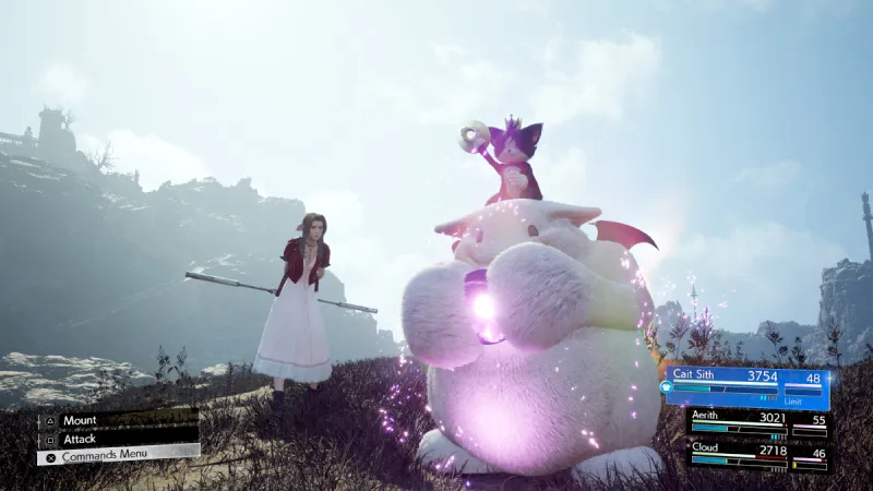 Those who played Final Fantasy VII Remake will recognize one of the prominent sidequest givers: Chadley. The young researcher once again wants your help learning about Materia, and he’ll reward you with additional summons. As you move through the world, he asks you to look into certain happenings through events called World Intel. During my hands-on session, Chadley asked me to hunt down and defeat certain enemy types as I journey through the sprawling open landscape. With each drawn-out battle, I receive side objectives to complete that will help further Chadley’s research.