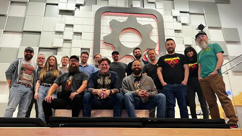 In honor of our cover story, we gathered most of Gearbox into one place for a photo op. If you look closely, you might spot a Game Informer alum hiding in the back row.