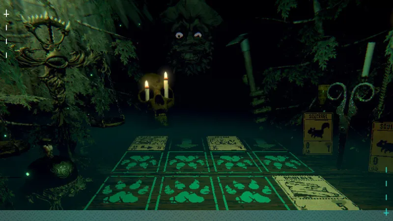 The core of Inscryption is a robust card game similar to Yu-Gi-Oh and Hearthstone that grows and changes over time. New mechanics and resource systems continuously appear throughout, providing plenty of viable builds to explore. You learn the ropes of the game in a dark cabin, with only the table to which you’ve been shackled visible in the flickering candlelight. Peering from the pitch-black shadows are the orange, spiral eyes of your captor, who acts like a D&D game master, roleplaying your opponents in his sinister deckbuilding roguelike gauntlet. From there, Inscryption masterfully weaves puzzles in and out of its card game and exploration sequences. Every discovery is a chance to learn more about your desperate circumstance and advance further towards freedom.