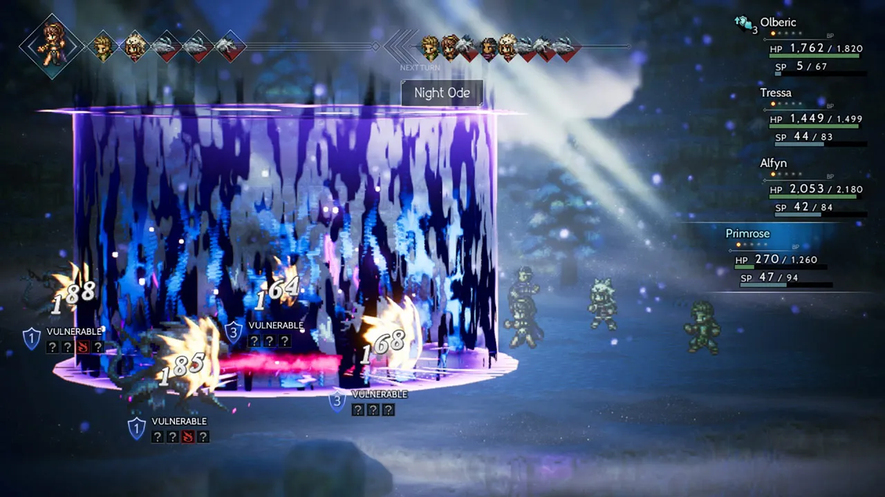 I like how for each noble path action, a rogue one exists in contrast. Though Olberic and H’aanit have the respective challenge and provoke path actions, I erred on the side of maintaining their reputations. The last thing I needed was more resistance in completing my mission, and I was spending all my money on stronger gear for my characters. While I didn’t have a chance to fully explore the extent of what a damaged reputation means, the concept is intriguing.