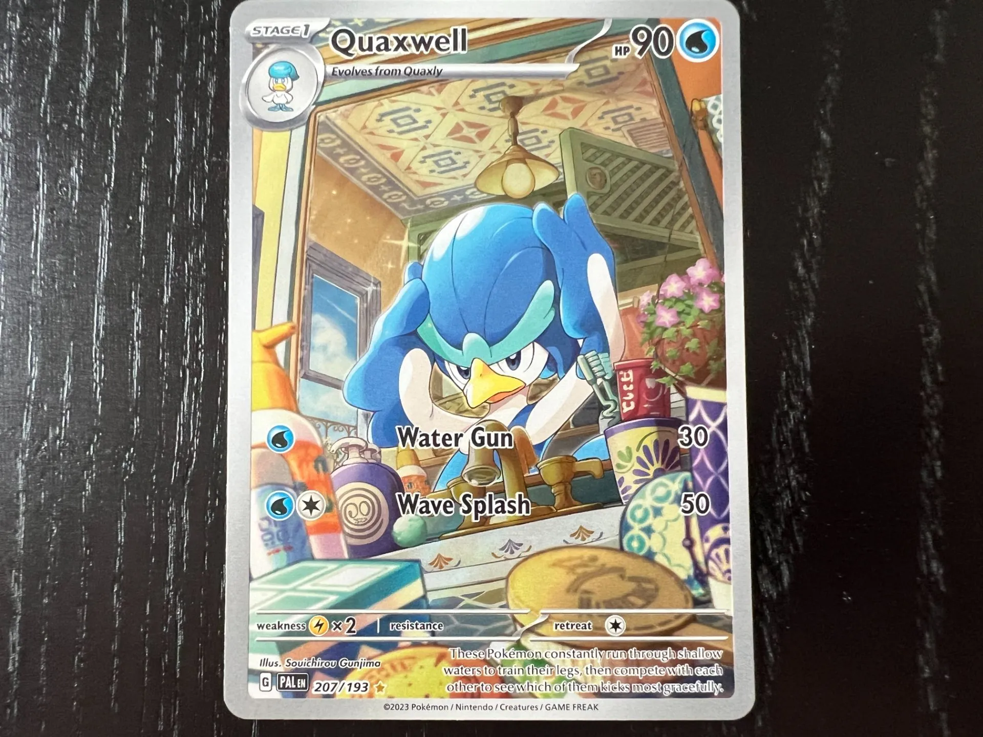 I was pretty happy with the cards I pulled from the packs. My favorite is probably the special Elite Trainer Box Pikachu card, which features the three Paldean starters in the background, though I also love the Pikachu I pulled from a booster pack. Outside of that, I enjoyed seeing the various Paldean starters' evolved forms, though, for some reason, my pulls skewed heavily toward Quaxly's evolution line. Outside of this most recent generation of Pokémon, I was happy to snag some updated cards of old favorites, such as Gyarados, Raichu, and Tyranitar.