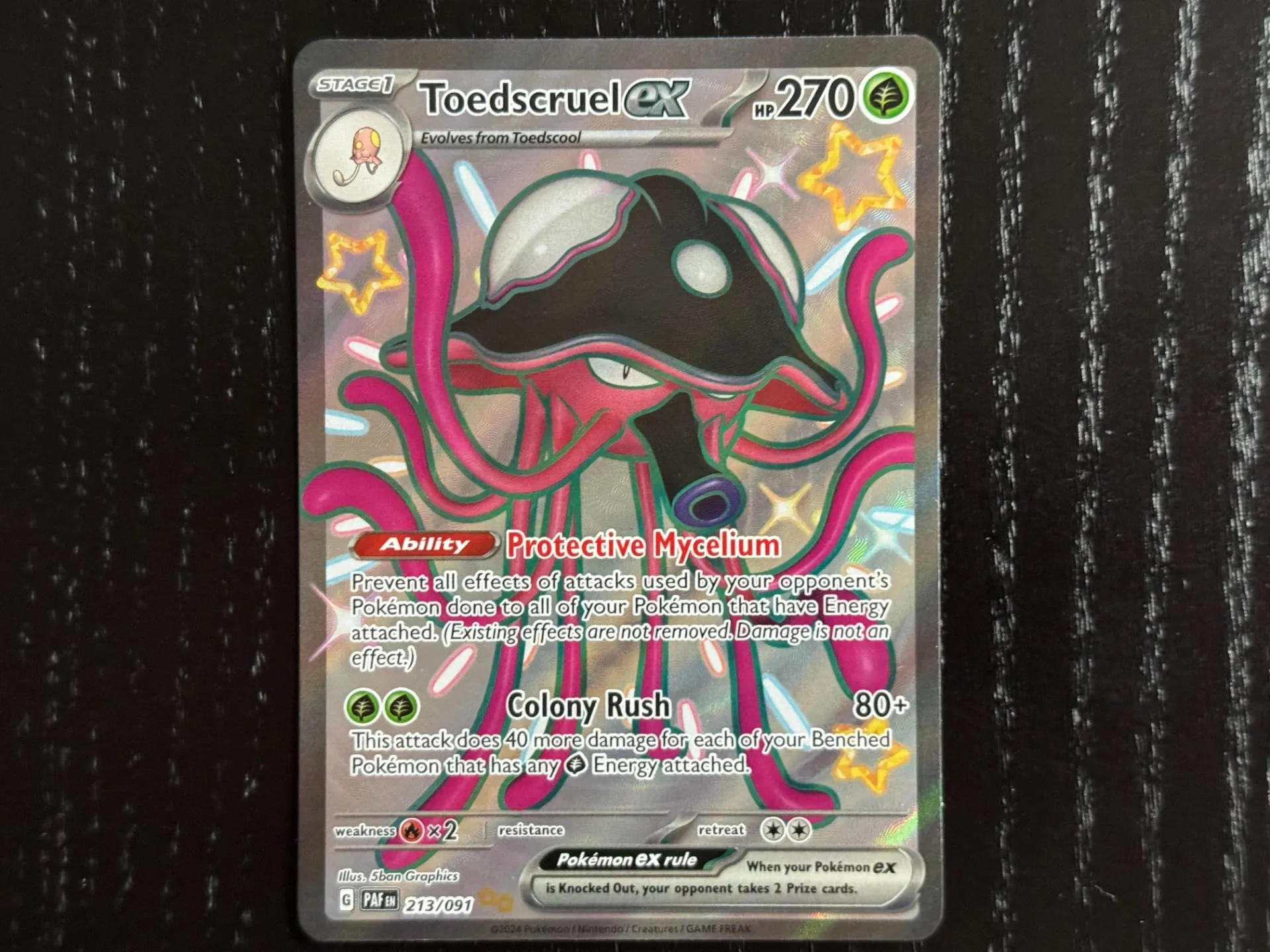 The Pokémon Company sent along a few of the collections and products that contain Paldean Fates booster packs so we could crack them open to see what we could pull. While I'm usually most excited about the Pokémon themselves, one of my favorite pulls this time was a Trainer card: the Nemona full-art Ultra Rare. But that's not to say I didn't pull my fair share of great cards starring some of my favorite Pokémon. I'm always a sucker for a cool Charizard card, and I love the Shiny Toedscruel ex that I found in one of the packs.