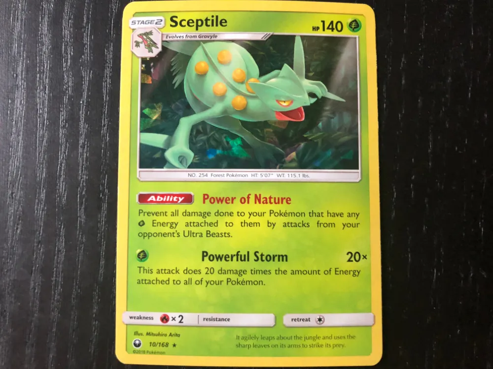 We were sent several booster packs, as well as the Hydro Fury and Leaf Charge decks to see what we could pull out of the new expansion. While Ultra Prism emphasized Gen 4 and Forbidden Light shined a hard spotlight on Gen 6, Celestial Storm is heavily focused on the third generation of monsters. That doesn't mean I didn't get a few Pokémon from the other gens. I especially liked the occasional cards from Gens 1 and 2, but if you're a lover of the Hoenn region, this is an expansion for you.