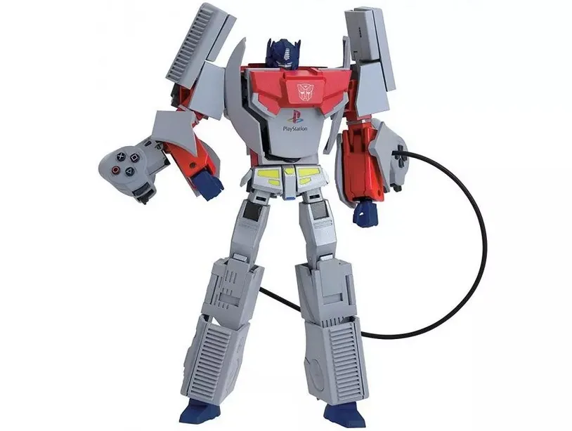 On November 7, 2014, toy manufacturer Takara Tomy dreamed up new transformations for these beloved robots. Optimus Prime adopted a light grey color (similar to Megatron's) that allowed him to transform into a PlayStation console, complete with a controller. Megatron's armor turned to the shiny black of the Sega Genesis (also known as the Mega Drive in other territories). Despite being one of the universe's greatest threats, Megatron's Genesis transformation was a colorful Sonic the Hedgehog cartridge.