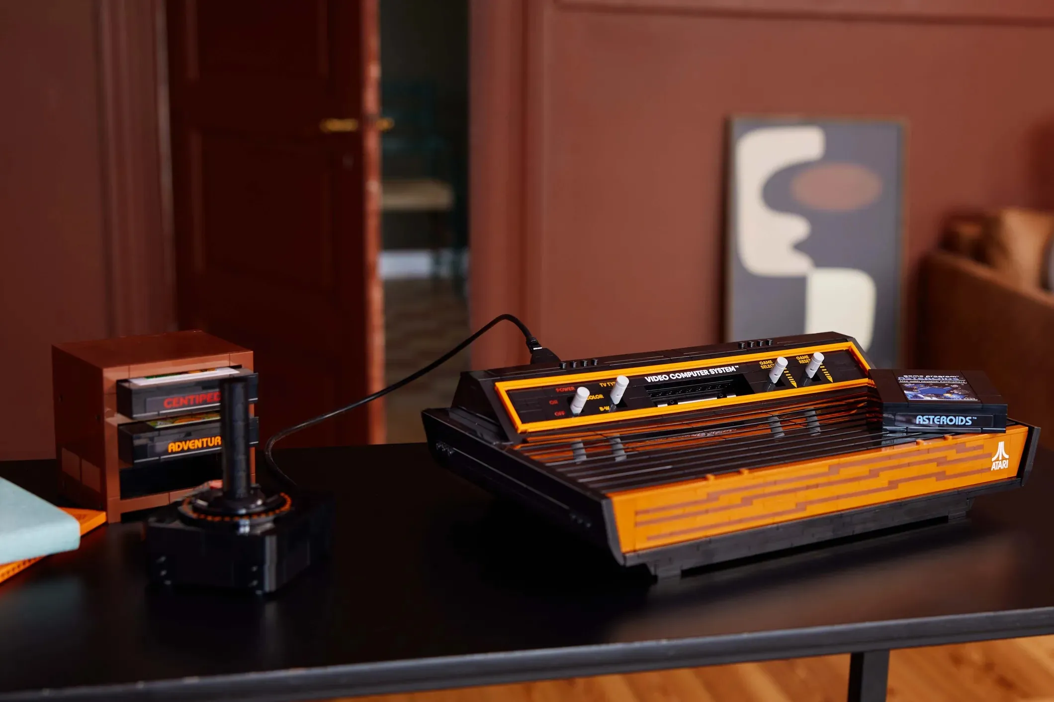 The Verge reports that the buildable model is reminiscent of the 1980 revision rather than the debuted console from 1977. At 2,532 pieces, the set includes the console itself, which, when opened, reveals a miniature 1980s living room, a controller with a movable joystick, and three game cartridges: Asteroids, Adventure, and Centipede. In a press release, designer Chris McVeigh emphatically said, “We hope that building this classic console takes you back to those halcyon days when a handful of pixels meant a world of adventure.”
