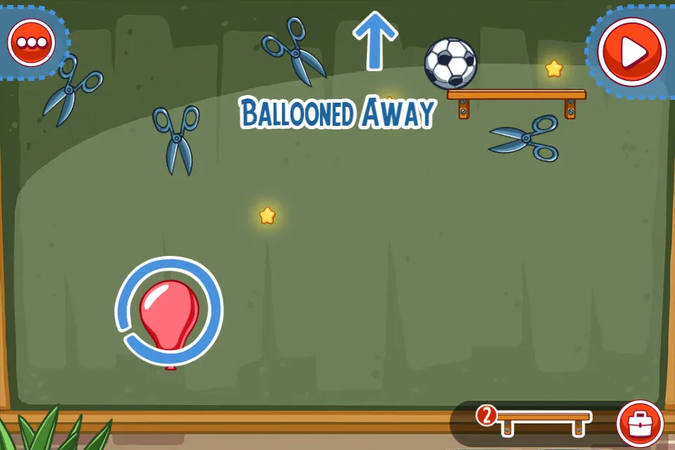 Winning is not based on luck in Amazing Alex. In Angry Birds, structures don’t always collapse in the same way, so sometimes you just get lucky. In Amazing Alex, balls always roll the same way, balloons always float in the same way, and ropes always swing in the same way. The consistent physics makes experimentation easy, because your results will always be the same. If something isn’t working, it won’t suddenly start working, and when it is working, it will always work no matter what.