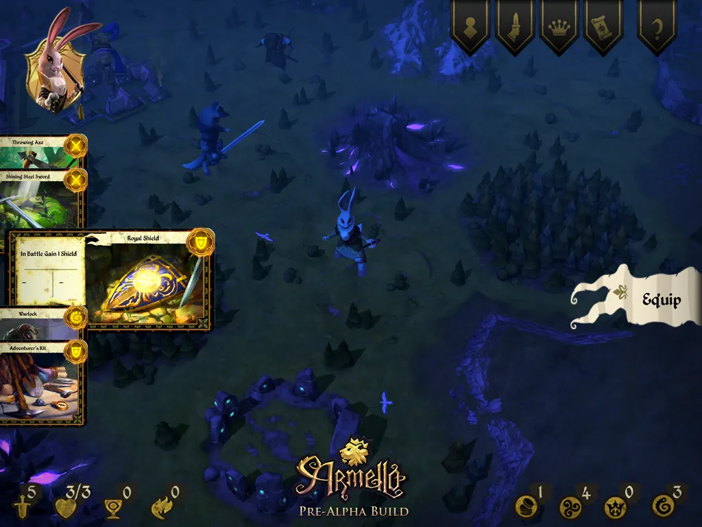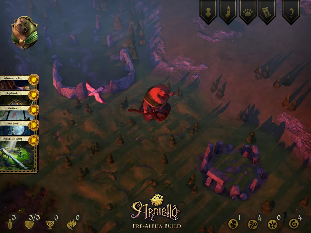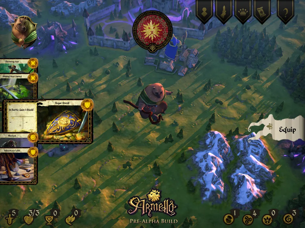 Today I saw an early build of the Armello on iPad. It combines Kusters and his team's passion for board games and great stories. Four heroes were options (rat, rabbit, bear, or wolf), but Kusters says they plan to launch with eight. The characters don't have specific classes, but instead have vague play styles that lend better to fighting or stealth. Once you choose a character, you fight for one goal: to become the king or queen of Armello.