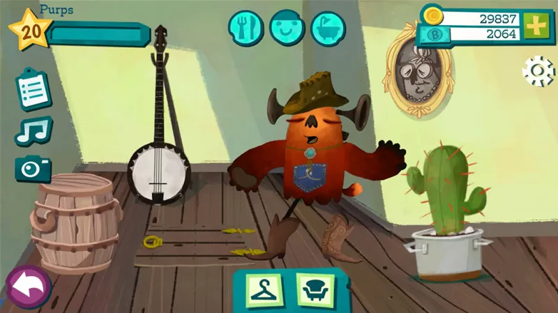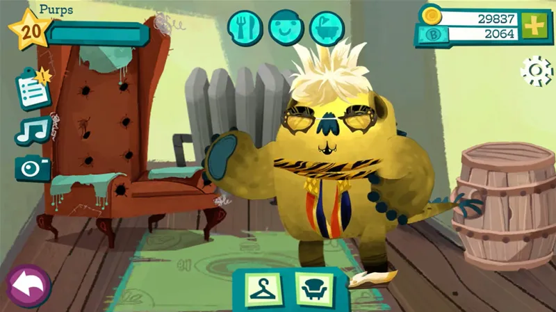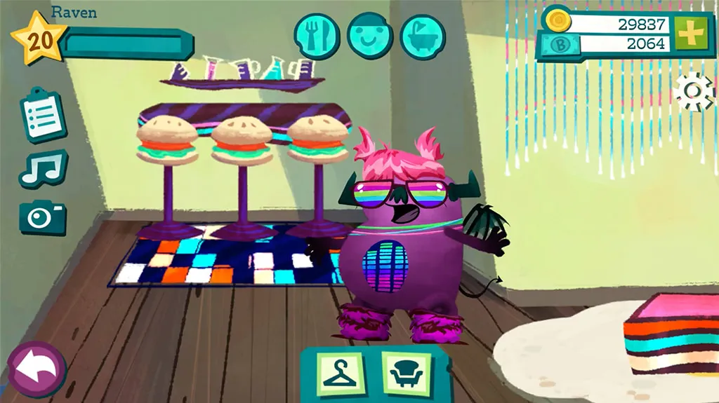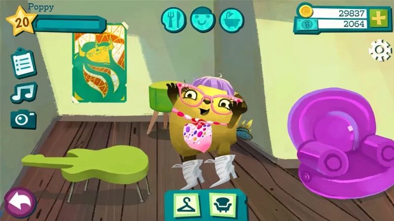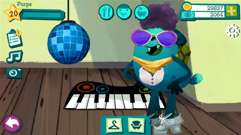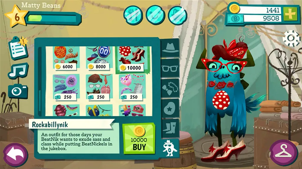 Players act as the assistant to a friendly-looking scientist who’s researching the monsters known as “Beatniks.” Depending on how players shape their Beatnik, its musical style can vary between peppy harpsichord and aggressive rock n’ roll. Players help their Beatnik evolve by completing tasks like winning arcade games, dressing their Beatnik up in music genre-inspired clothing, or playing their own music inside or out of the game. Players can also help build their Beatnik’s city and apartment by collecting activity rewards.
