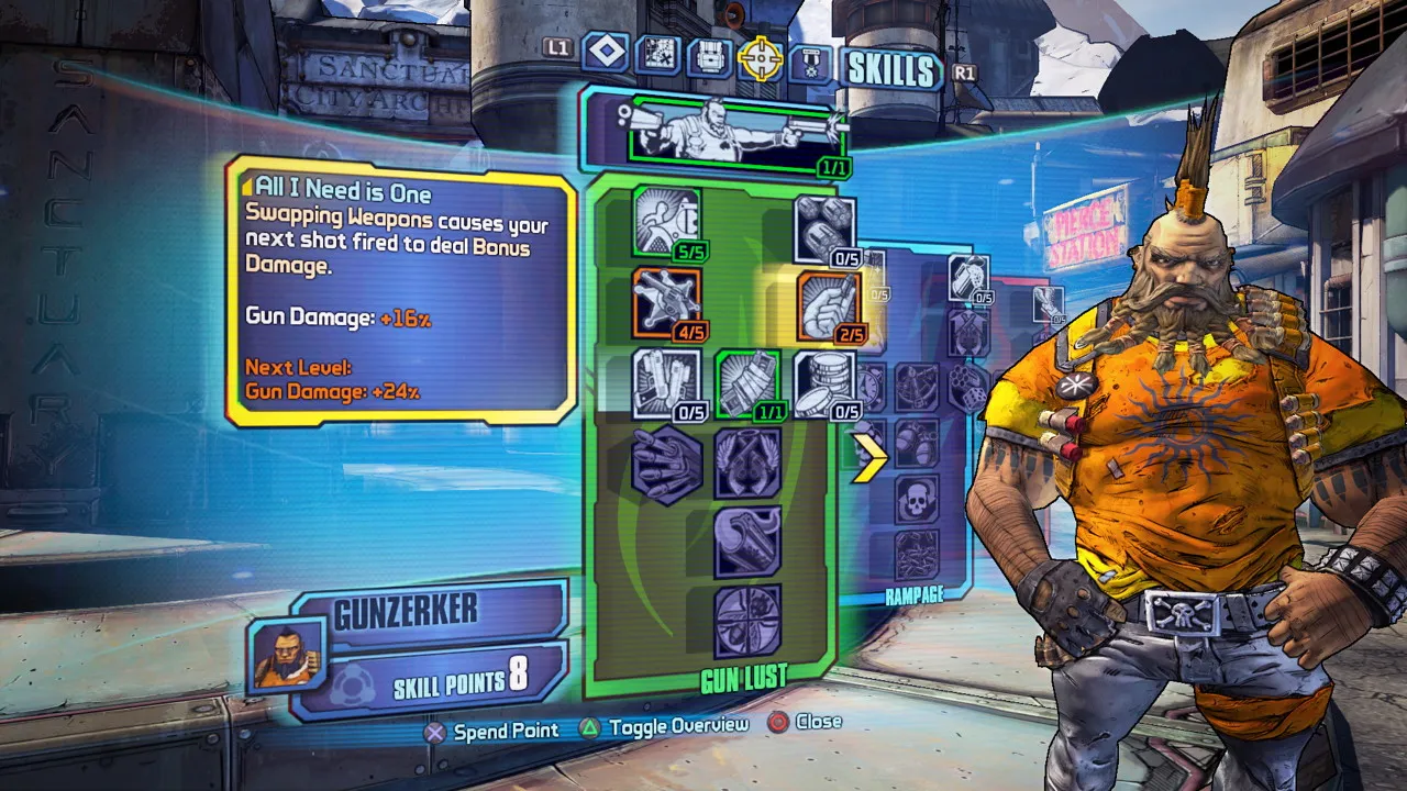 Having four distinct classes allows for a variety of gameplay experiences, but the replayability doesn’t stop there. Each class has three distinct skill trees to explore, and your playstyle can vary wildly depending on how you choose to distribute skill points. My Zer0 was a melee machine. I opted to take down Pandora’s baddies with my sword just as often as with my bullets. If I had chosen to follow the sniping skill tree, Zer0 would instead be a long-range threat with quick reload times and high critical hit percentages. It’s almost like Borderlands 2 has twelve different classes instead of four.
