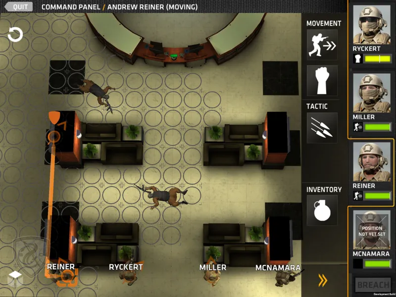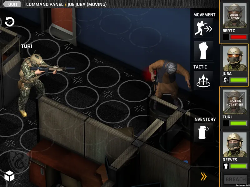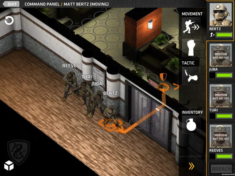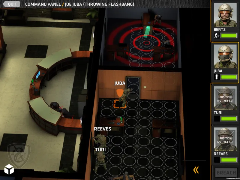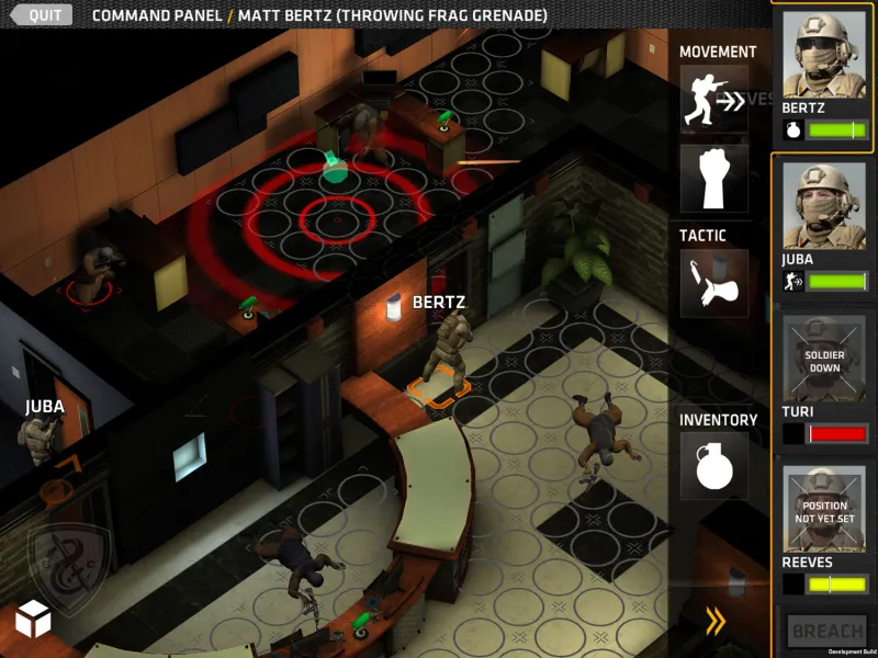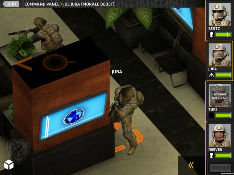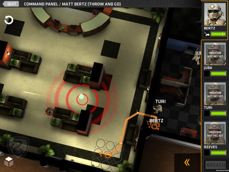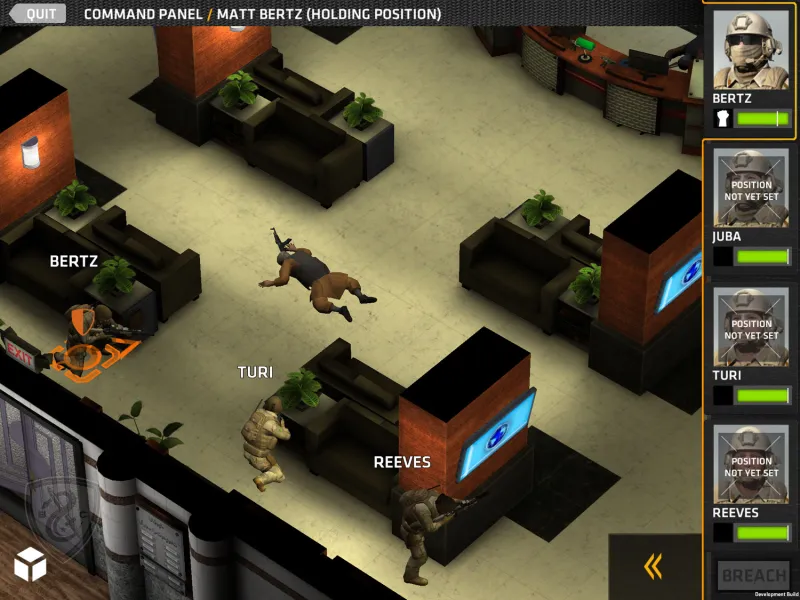 Breach & Clear's foundation is solid, but at this point that's all there is; the "coming soon" features list is longer than the list of what's actually in the game. The game lacks a single-player campaign (or story of any kind), a multiplayer mode, and two of the three mission types (bomb defusal and hostage rescue) haven't been implemented yet. This leaves terrorist hunt as the only option, which is a simple shoot-all-the-bad-guys mode played out over disconnected maps. Your only weapon choice at this juncture is assault rifles (shotguns and SMGs are planned), and the game lacks a replay feature. If one of your soldiers is gunned down while off-screen, you have no way of knowing what happened to him. All of these missing features make me more interested in what the game might become than what it currently is.