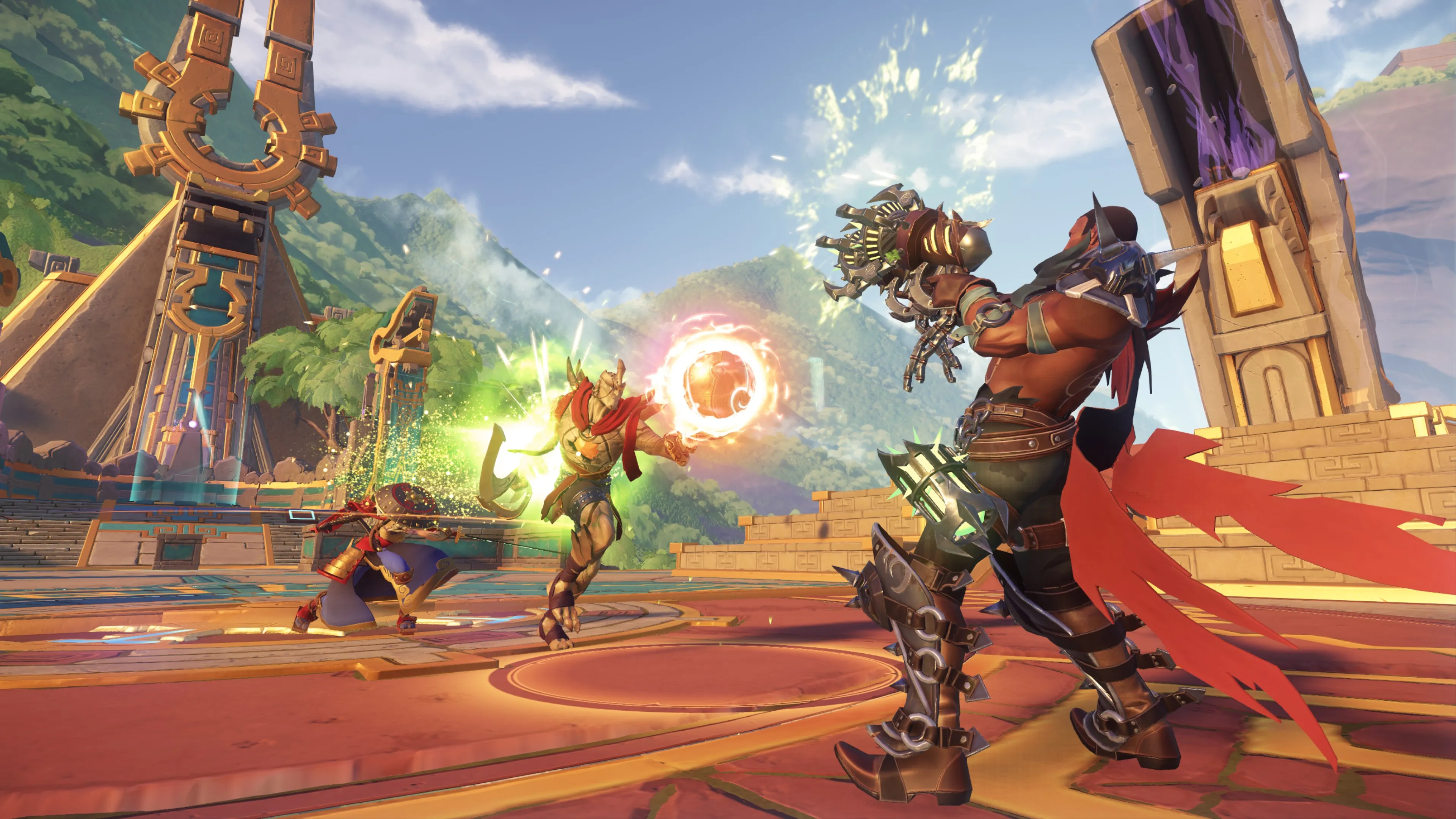If you get hit by anyone while carrying the relic, it bounces off of you, so every enemy attack basically functions as a tackle. However, the game doesn't stop whenever you go down with the ball like it does in football. Instead, the relic remains in play, with characters on both sides trying to grab it. If an entire team is eliminated before anyone on it can re spawn, the opposing team wins, which encourages players not to recklessly throw themselves at the ball but to play strategically.