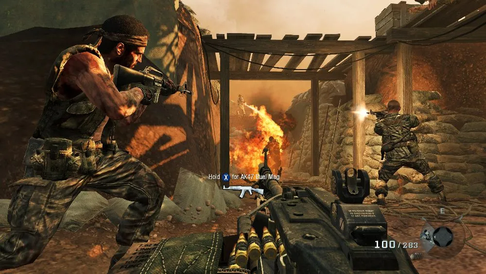 The series has always hung its single-player hat on creating spectacular moments that players remember for years. It didn’t matter if you couldn’t remember the name of the faceless Army Ranger you’re playing as, because oh my god they just dropped an EMP on the White House! Black Ops flips this equation around. The story is coherent, and the characters are more than cardboard cutouts. I wanted to keep playing to find out how the plot ends up, not just to see what crazy situation is around the next corner. On the other hand, as Black Ops makes gains in characterization and storytelling, it loses spectacle. Outside of the excellent prison break level, the “wow” moments fall flat. Even blowing up what appeared to be half of Vietnam with an attack chopper failed to elicit much of a response from me beyond making me swear at the controls. Far too much of the roughly seven-hour campaign is spent running through the same pop-and-shoot motions we’ve been doing for years. At least my companions were less interested in running directly into my line of fire this time. Be sure to stick around after the credits, though – the best bit of the game is hidden there.