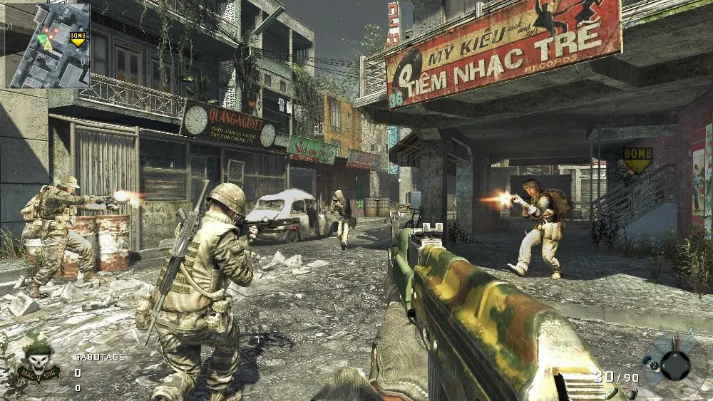The campaign puts players neck deep in the close-up brutality of combat. Limbs shatter disgustingly as bullets rip apart flesh and bone. Gore flies in all directions as combatants are popped like meat balloons by the vicious weaponry of the ‘60s. In one uncomfortable sequence, the player has to torture a restrained prisoner. This is an emphatically mature game (in the ESRB sense, anyway). Everyone should make their own judgment on what they are comfortable with, but Black Ops crossed my personal line in its bloody depictions of violence, particularly the torture sequence. I wasn’t able to compartmentalize it as enjoyable cartoon violence like I have with so many games over the years. Call me a wuss if you want, but the realistic gore is distasteful in the absence of a discussion of what should be a careful decision to employ lethal force. I realize that Treyarch isn’t trying to put on a morality play here, but Black Ops pushes the lines of good taste.