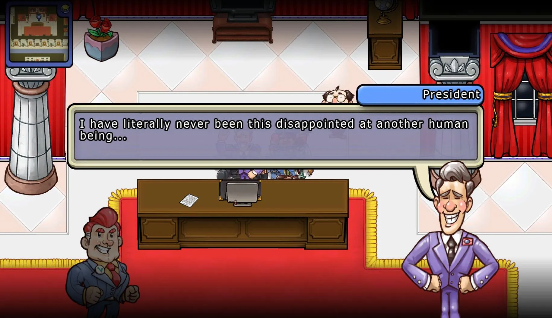 The game, a turn-based RPG from developer Eden Industries, follows the vice president as he builds a team of random citizens to battle some kind of threat – that part of the game isn't entirely clear yet. It was delayed once already back in August, and is now slipping beyond its November release date.