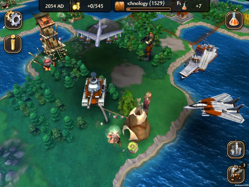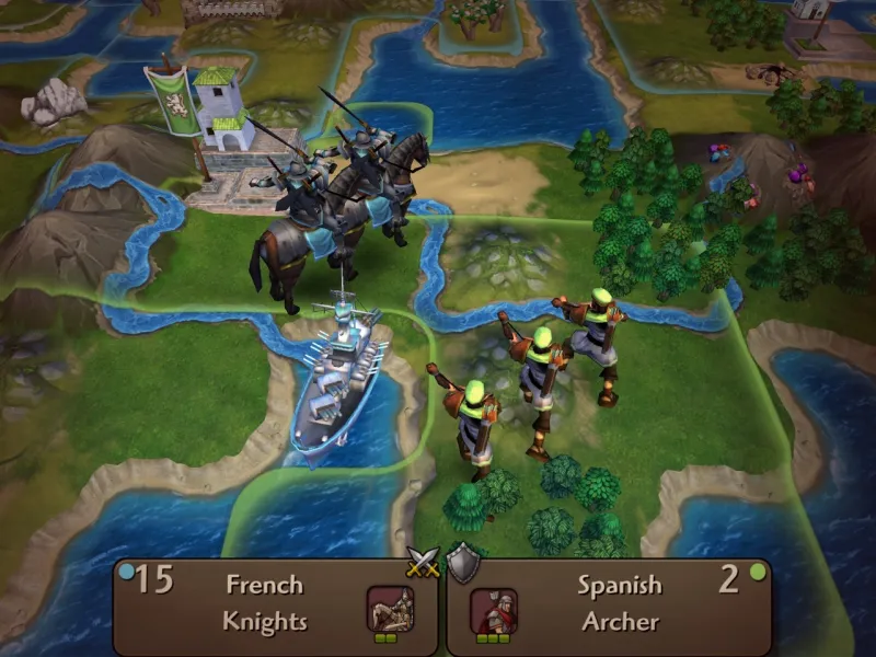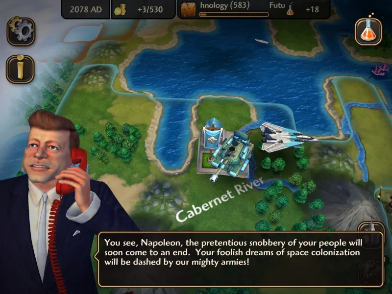 Civ Rev 2’s most notable change is its 3D graphical upgrade. The first iOS port was based on the Nintendo DS version, which used 2D sprites. The new 3D world looks great, and the art style falls more in line with Civilization V. Aside from the facelift, however, not much sets this game apart from the original Civilization Revolution. It has a smattering of new leaders – such as Winston Churchill and JFK – as well as a few new technologies and units. However, these additions don’t add anything compelling to the experience. For example, the new Modern Medicine and Information Technology technologies let you build a couple new wonders, and the new units – such as the Jet Fighters and SpecOps Infantry – feel like slightly tweaked versions of pre-existing units.