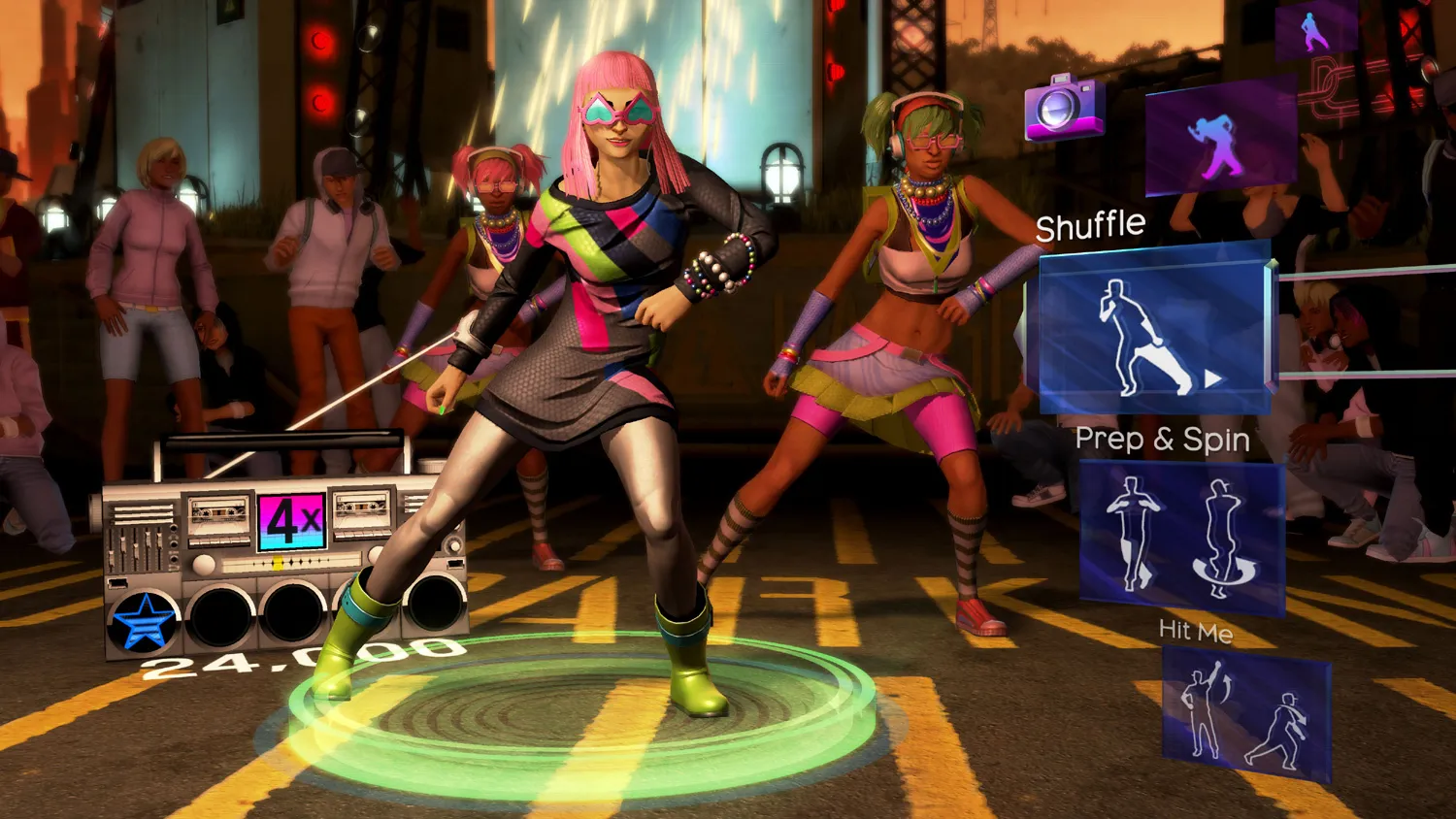 In Break It Down mode, flash cards that feature move names and images of dancer silhouettes are presented on the right side of the screen. These images’ simple-yet-clear designs make them easy to decipher at first glance. I was usually able to guess what each move would entail with one look at a flash card without a demonstration. As the moves make multiple appearances across routines, they become easier to recognize and execute during scored performances. Failing a move in this mode allows you to repeat the motion several times and goes as far as letting you slow down the demonstration to nail your technique. Unfortunately, you’re required to go through the entirety of a song’s breakdown to practice a specific move. I wish I had access to a move bank where I could just focus on moves I was struggling with as opposed to repeatedly going through an entire track I have otherwise mastered.