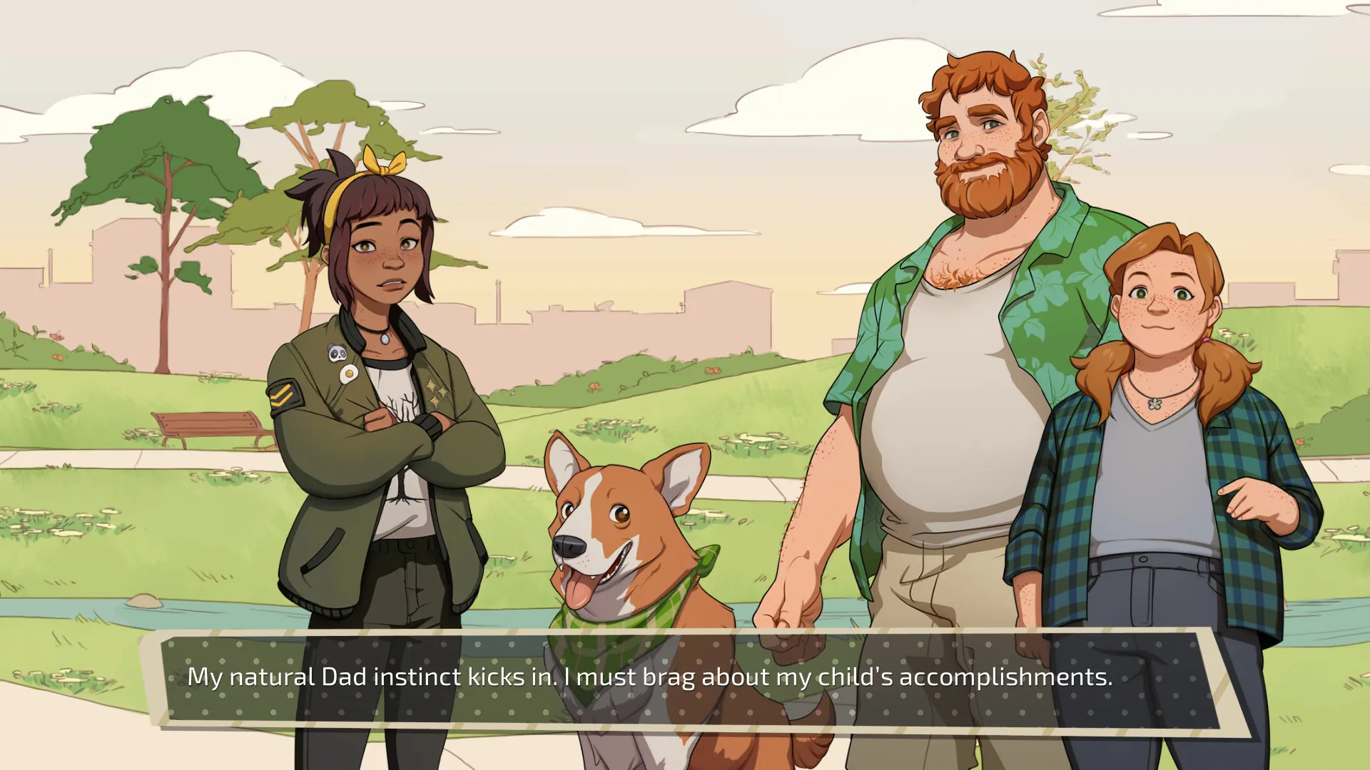 Starting off, dates come across more like casual hang-outs. Whether you’re at a softball game to see your date coach his team or you’re heading out to a concert that has an awful opening band, the focus is on getting to know a fellow dad. These interactions aren’t always romantic; a lot of the time, you are two dads talking about the struggles of parenthood or cultivating a friendship that can later blossom into a relationship. It’s a refreshing look at fatherhood and male bonding that is rarely portrayed in games.