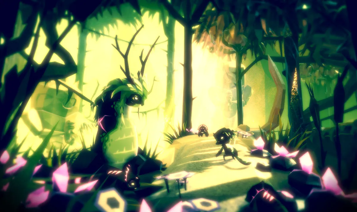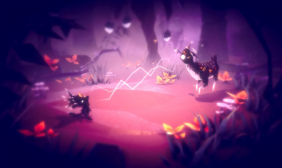 The art direction is undeniably unique, but I never found it inviting or particularly pleasant to look at. With the myriad spikes, every creature in the game looks like an enemy, which is a gameplay problem, but I also struggled to sympathize with any of the creatures based on their designs. Every area of the forest also feels similar, even if the color scheme is working overtime to try and make locations feel distinct. Since it was always hard to tell if I was in a new location, I had to rely on in-game markers to point me in the right direction too much.