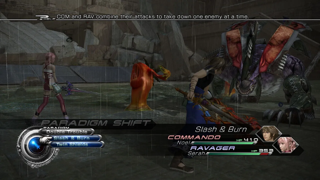 "Slash & Burn is a tactic where Commandos keep the enemy’s chain gauge up and Ravagers increase chain bonuses, both driving the enemy to its stagger point. The higher the chain bonus, the greater the damage the foe will receive."