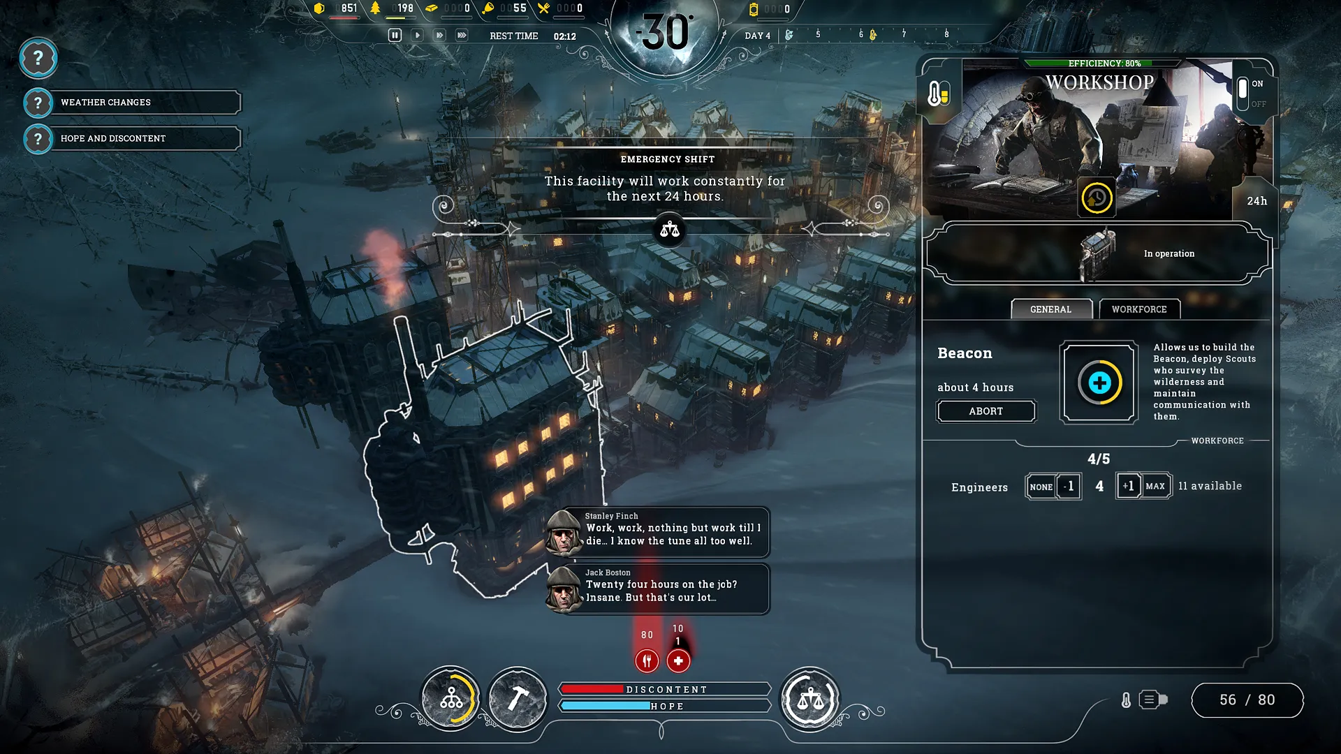 Frostpunk's tough decisions bring about questions of morality. For example, would you let children work in the labor force if it increased your chances of survival? Will you treat the sick and wounded, despite having scarce resources? Would you allow robots to help ease the workload off of your human settlers, even if there's a chance these mechanical helpers are unsafe?
