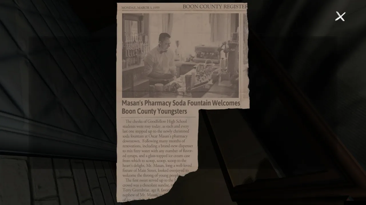 Looking at objects, even ones that offer no insight into Sam’s whereabouts, becomes an addiction. I left no stone unturned throughout the process, even doing small things like opening the fridge to see what the family eats. Upon finding an important object, Sam narrates what the item means to her. These moments have some of the best writing I’ve seen in a game. They’re set up like she’s reading her diary, completely confessional, with genuine emotions. Often she comes to such a true-to-life statement that it stuck with me long afterward. When talking about a field trip, “stick with the group” comes to mean something more than I expected.
