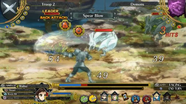 Melee units are, as you might expect, built for close-quarters combat, while ranged units do better by hanging back and attacking from a distance. Magic users have a medium attack range but have to charge up their more powerful moves before they can be executed, leaving them vulnerable to ranged attacks.