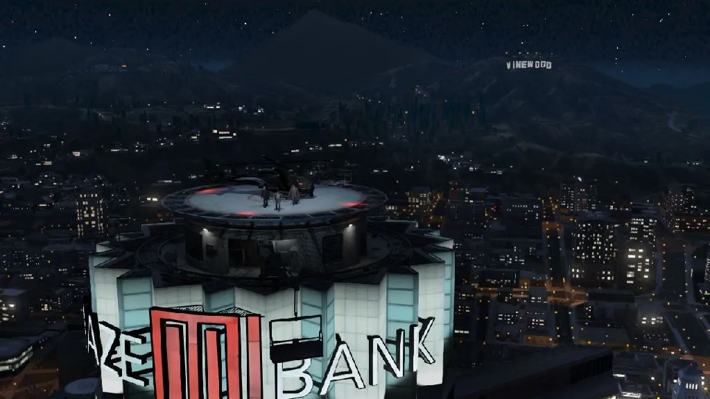 With our brief glimpse of the ocean life coming to an end, the playtester jumps from Trevor to Michael, who is walking out of an office building in Vinewood. Since he can't stand his family, the career criminal spends the majority of his downtime drinking whiskey, watching Vinewood action movies, and visiting his therapist.