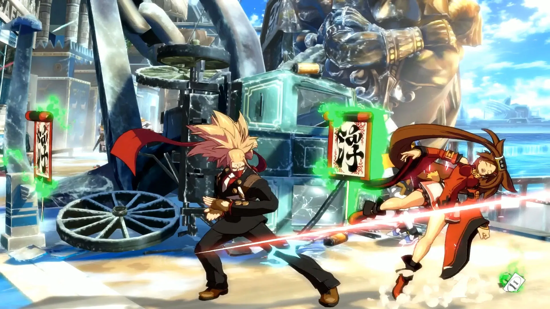 Rev 2 adds two new playable characters to Xrd: Guilty Gear veteran Baiken (a gruff samurai with an eyepatch) and Xrd newcomer Answer (a ninja who doubles as a secretary). Both characters fit in well with the current cast’s diverse set of tools. Baiken can parry attacks and turn them into opportunities for counterattacks. She also fires a short-range grappling hook that can force an opponent into a guessing game even when blocked. Answer throws cards and floating scrolls that let him teleport and move through parts of the screen other characters can’t, giving him some cool mobility options. Both characters also have nice touches that give them flair: Baiken stands up one leg at a time, putting her hand on her knee in an “I’m too old for this” way, while Answer is constantly talking on his magic cell phone, too busy to fully commit to fighting.
